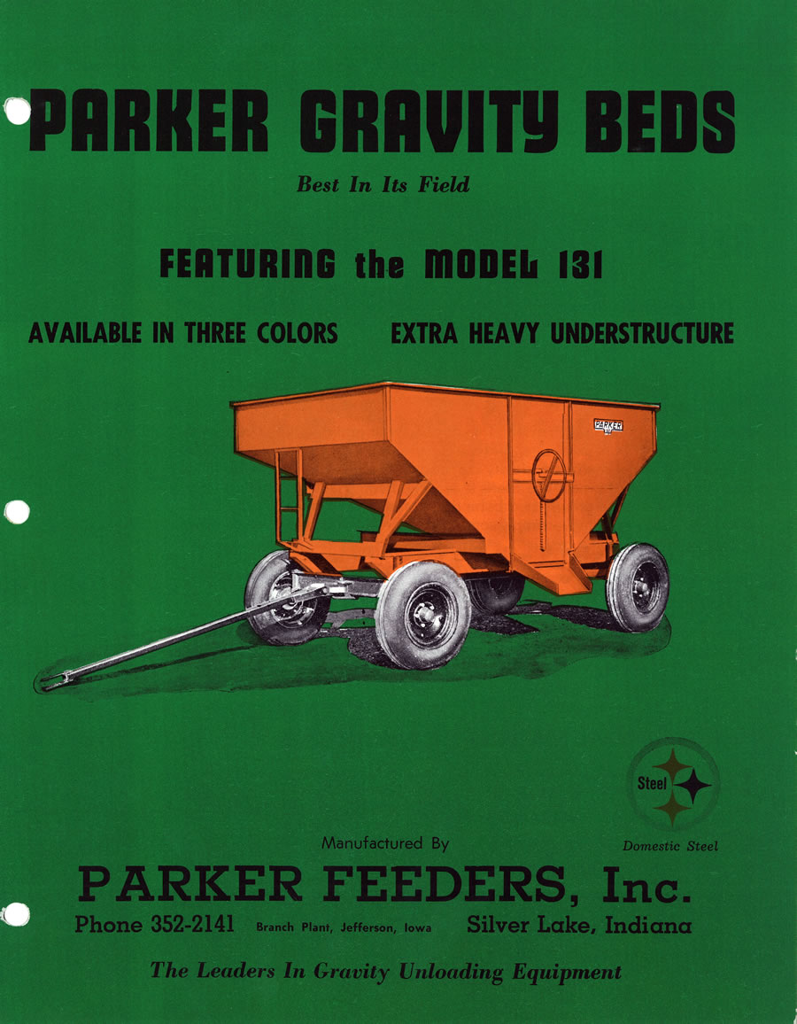 Parker Industries (then Parker Feeders) traces its roots back to late 1960 and was founded by S.L. "Hank" Parker in Silver Lake, Indiana. He sold his first 130 bushel gravity bed on October 3rd, 1960. The price was $140. The customer was Kenneth Coble of South Whitley, Indiana.
